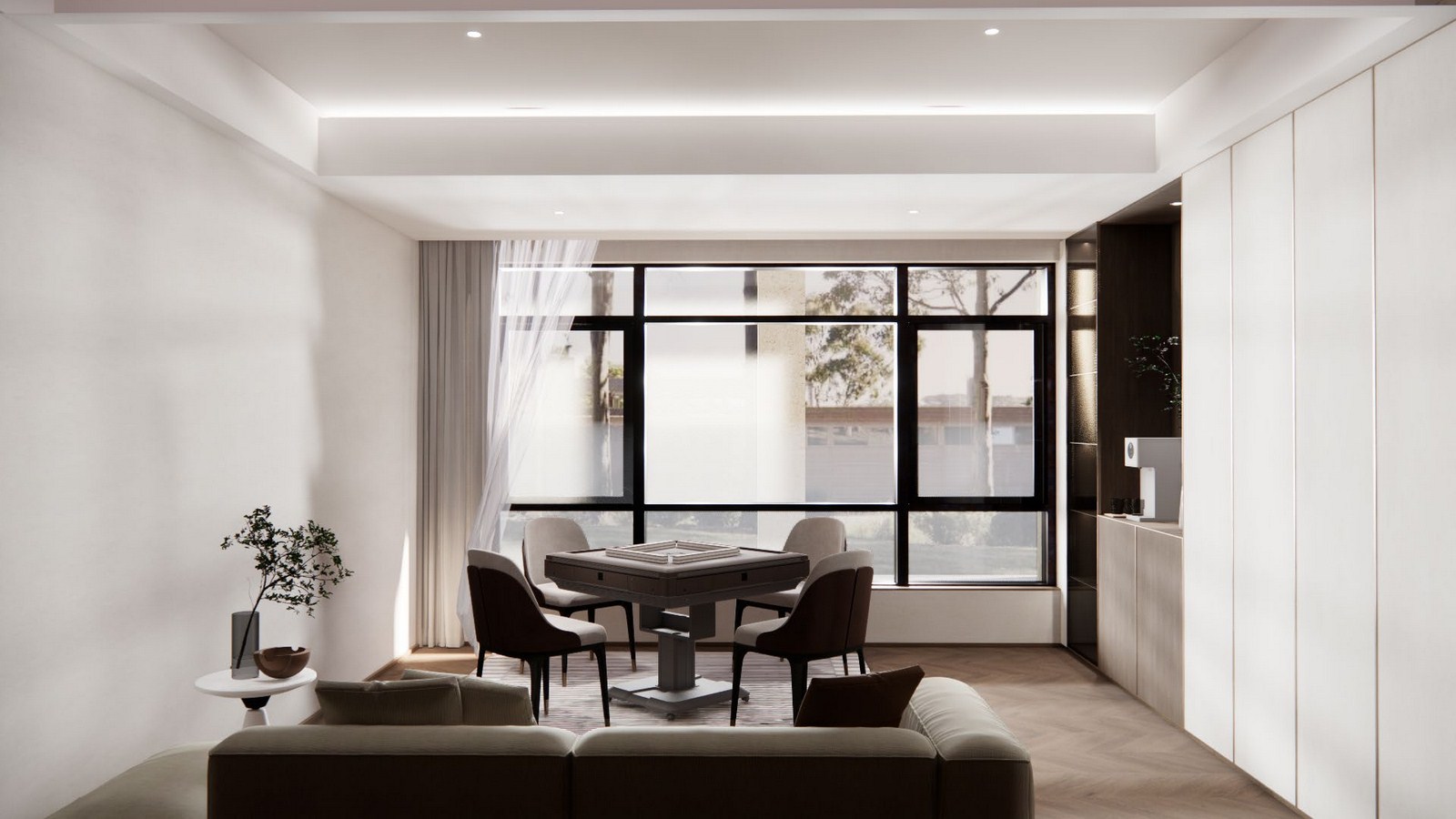 本案是業(yè)主與父母,子女一同居住,設計原則圍繞“適宜居住,適宜生活!”這一命題展開,整體呈現(xiàn)極簡但不拘謹,生活感十足。